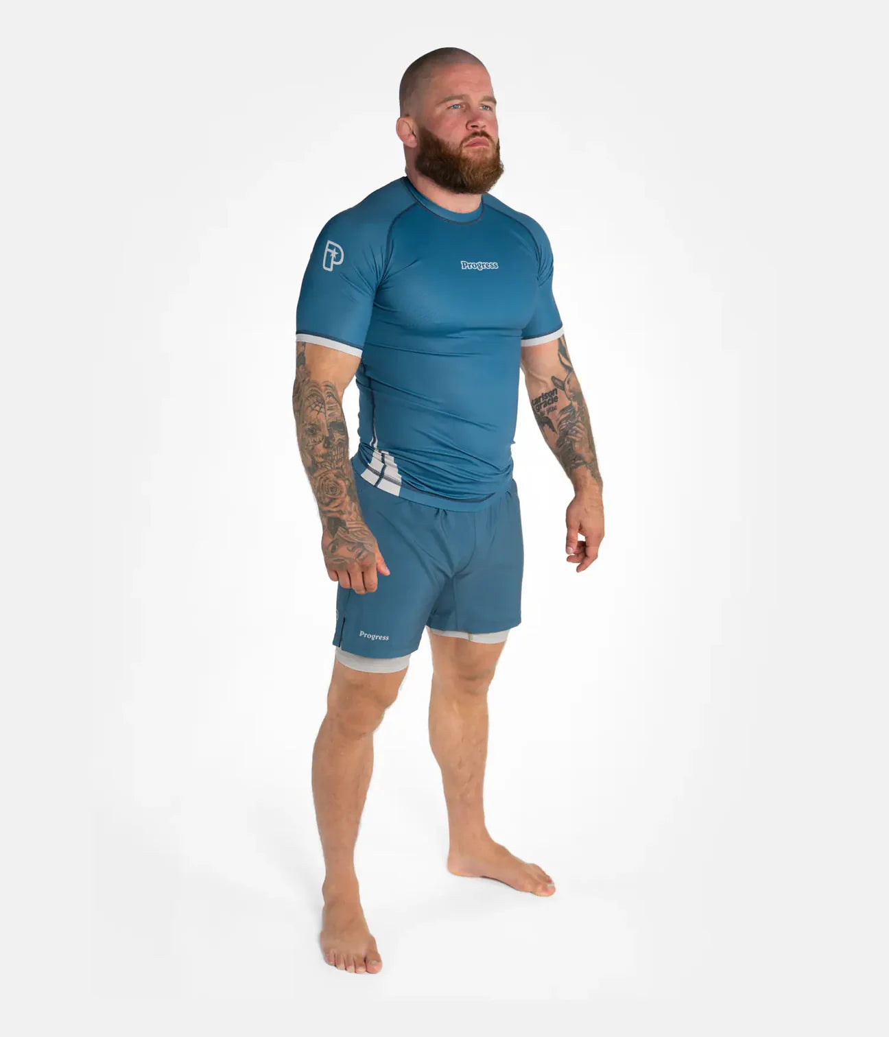 Rashguarden er laget i et slitesterkt polyester- og spandexmateriale med hurtigtørkende egenskaper og Progress sin anti-bobble-teknologi, som gjør at stoffet holder seg pent over tid. Flatlock-sømmer reduserer friksjon og øker komforten under både drilling og hard sparring.