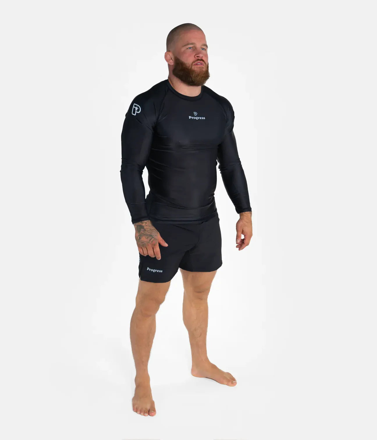 Rashguarden er laget i et slitesterkt polyester- og spandexmateriale med hurtigtørkende egenskaper og Progress sin anti-bobble-teknologi, som gjør at stoffet holder seg pent over tid. Flatlock-sømmer reduserer friksjon og øker komforten under både drilling og hard sparring.